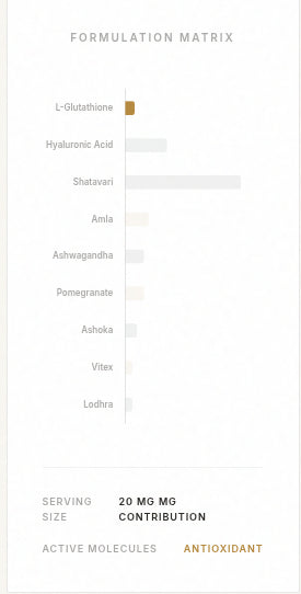 A synergistic convergence of clinically-studied antioxidants and time-honoured Ayurvedic botanicals for comprehensive skin vitality.