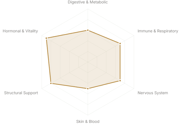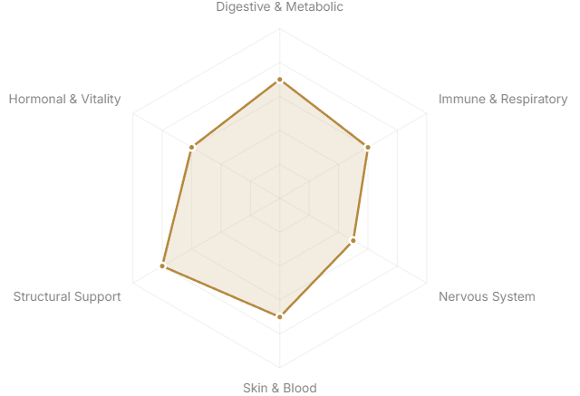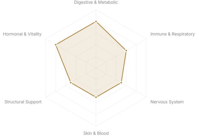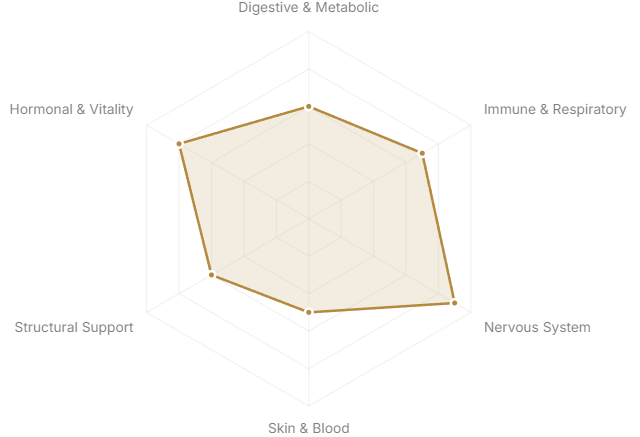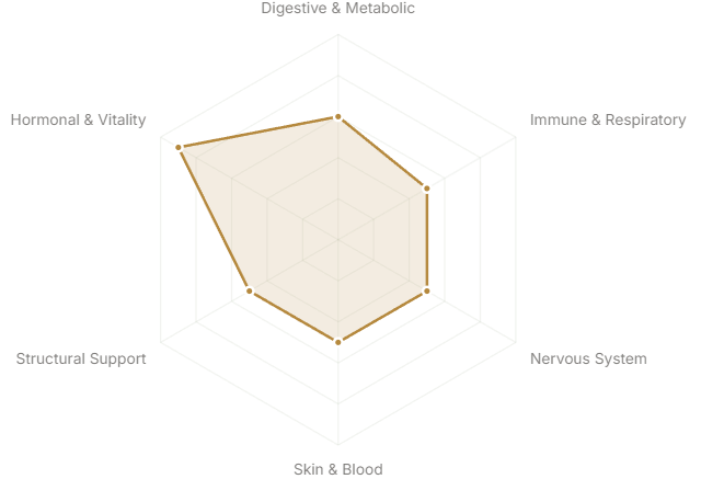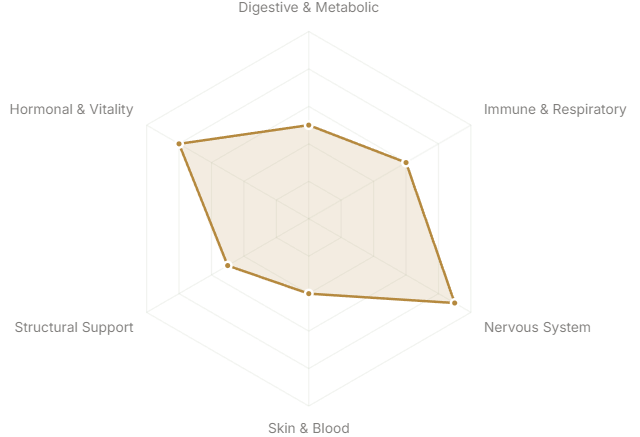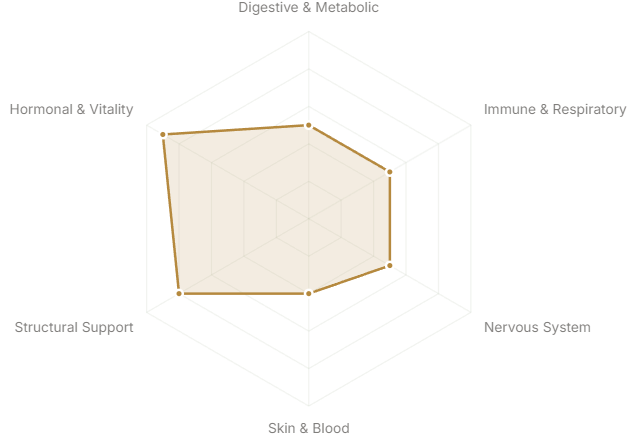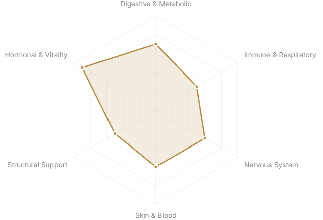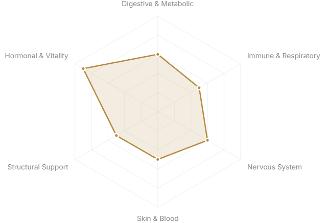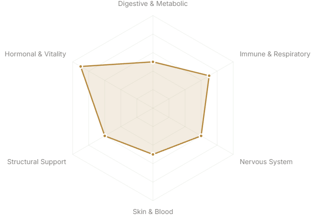 - Hormonal & Vitality(Reproductive health, energy, longevity)