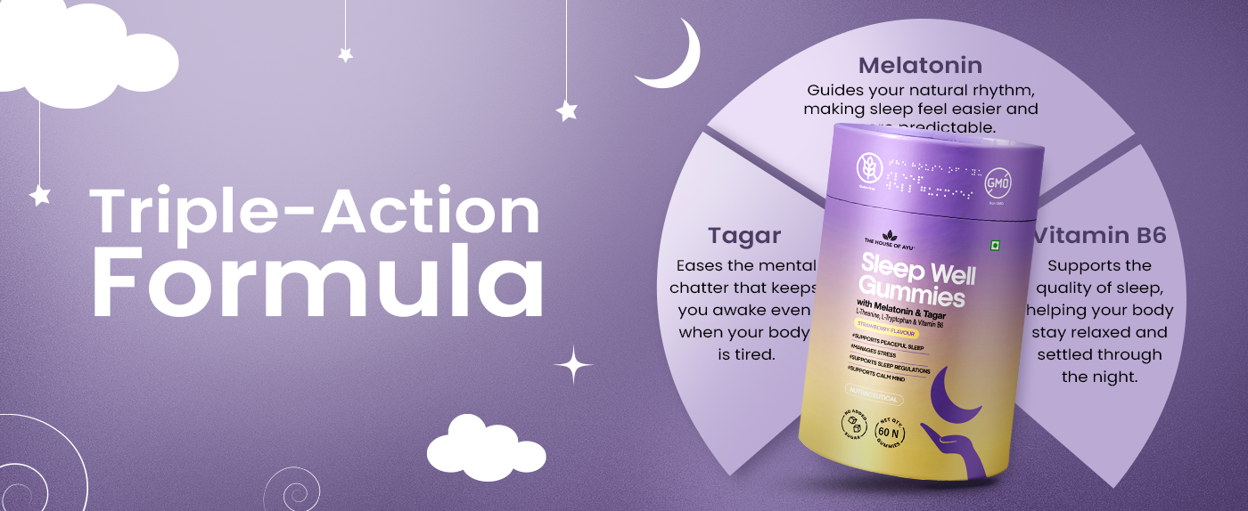 It's the Triple-Action difference: Tagar (our Ayurvedic differentiator) + Melatonin + Vitamin B6. It’s rooted in heritage but refined with modern sleep science, and designed to be non-habit forming, clean, and easy to understand. It’s made for people who want clarity, not confusion, when they read a label.